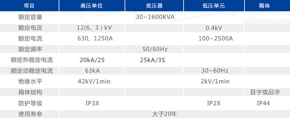YB□-12/0.4型預裝式變電站,用于10kV環(huán)網(wǎng)供電、雙電源供電或終端供電系統(tǒng)中,作為變電、配電計量、補償、控制和保護的成套裝置。變電站內(nèi)除裝有變壓器外,高壓側裝有三工位(或二工位)負荷開關、后備保護熔斷器及插入式熔斷器;低壓側按用戶要求可裝配控制電器、配電電器、補償裝置及計量表計等。以變壓器油作為絕緣和滅弧介質(zhì)。